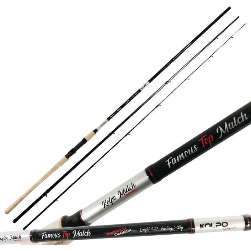 De Kolpo Famous Top Match is een super slanke en lichte driedelige matchhengel, volledig gebouwd met de nieuwe Kx-one-30T superhoge koolstofmodule. Het handvat is van natuurlijk kurk wat bewerkt is voor extra grip. De hengel heeft een goede actie en balans om met een dobber te vissen en beschikt over een schitterende top actie waardoor het drillen van de vangst een echt plezier wordt! De hengel biedt dan ook uitstekende prestaties voor het geld.