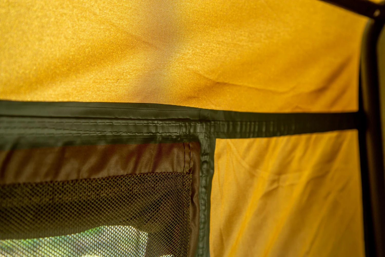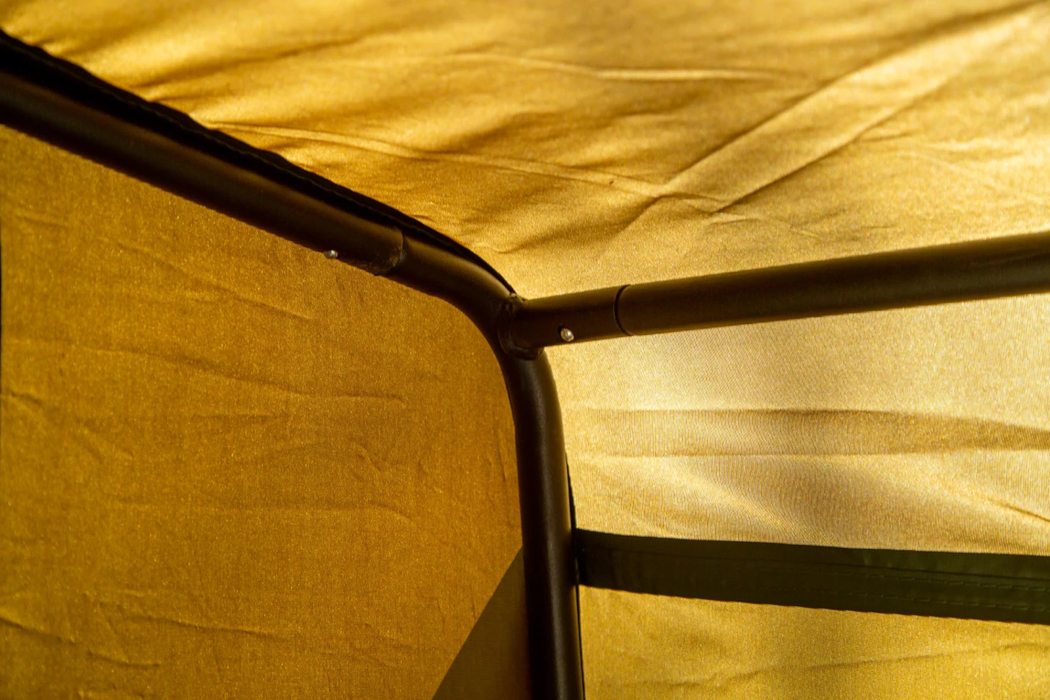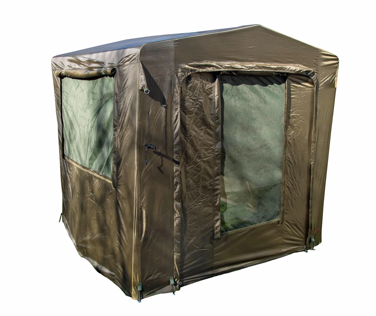 Dit Ultimate Cook & Chill House is perfect voor langere sessies met meerdere personen en kan worden ingezet als keuken, extra opslag of om samen te chillen. De ruime en hoge tent heeft een metalen frame van versterkte buizen met extreme stijfheid en sterkte en is zeer snel op te zetten. Met spanpunten in elke hoek kun je de tent aan de grond bevestigen voor extra stabiliteit en als extra veiligheid tegen windstoten. Dankzij het 3000HH polyester kan er geen spatje water binnendringen en blijf je altijd droog. Aan beide kanten van de tent bevindt zich een ingang en het raam heeft een muggengaas optie. Dit Ultimate Cook & Chill House wordt geleverd inclusief T-haringen voor zwaar gebruik en een stevig en ruim grondzeil.